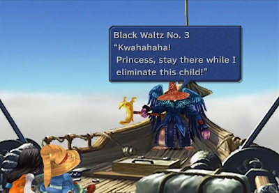 Black Mages in Final Fantasy IX are mass-produced artificial soldiers who for the most part display little to no personality. There are a few factory defects (such as Vivi, one of my favorite characters in the entire series), but out of all the mages who still serve the villains, only three show any real character, and those would be the three Black Waltzes- three specialized Black Mages sent to retrieve Princess Garnet, who the heroes have kidnapped at her own request.