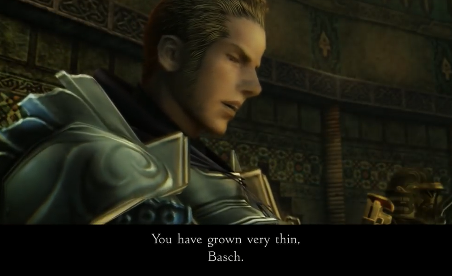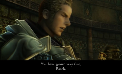 Gabranth is a very conflicted character. On the one hand, he harbors a hatred of Basch for abandoning him and his mother to fight for Dalmasca, but on the other, he has a deep sense of self-loathing about failing to defend Landis, and feels as though he has lost his honor. Despite this, he is utterly ruthless and occasionally sadistic. Case in point- he disguises himself as Basch to frame him for the murder of Dalmasca’s king, then keeps him imprisoned despite telling the public he was executed and continually visiting him to rub Dalmasca’s state of affairs under the occupation in his face.